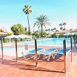 يمكن للضيوف أثناء إقامتهم في Oasis Beach Holiday Home With Jacuzzi بلايا ديل إنغلز المكونة من 1 غرفة نوم الاسترخاء على الشرفة مع حوض السباحة.